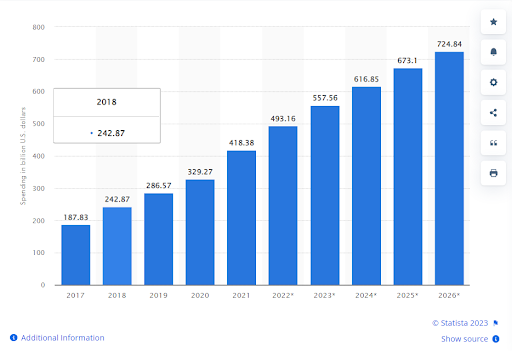 Global programmatic advertising spending from 2017 to 2026 (in billion U.S. dollars):