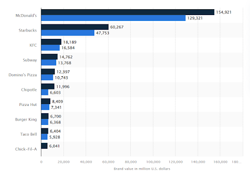 In the fast food industry, McDonald’s had the highest brand value in the world, estimated at nearly $155 billion, way ahead of the next closest competitor, Starbucks.