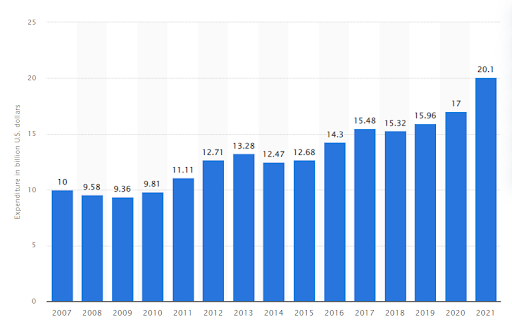 It doesn’t seem quite fair, does it, considering the incredible impact that fathers have on our lives. Thankfully, perceptions of Father’s Day are changing, and shopping trends are also catching up. Take a look at the steady increase in Father’s Day spending in the US from $10 billion in 2007 to over $20 billion 2021: