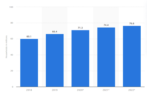 Amazon Prime customer demographics continue to be a growth engine, particularly in the US where it offers the most benefits. In 2022, there is expected to be over 76.6 million households in the US with an Amazon Prime subscription, up from 66.4 million in 2019.