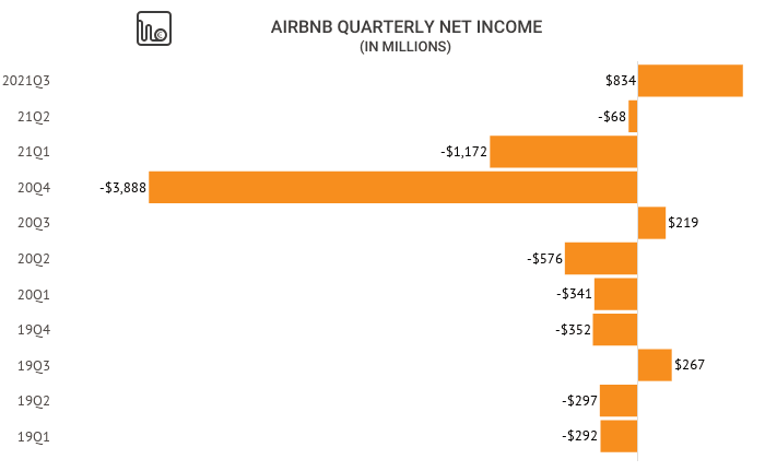 Commentators regarded this as a smart strategic move that gained massive attention for the brand during a difficult time. Airbnb is bouncing back nicely as global travel resumes, jumping from an income loss of $68 million in Q2 2021 to a profit of $834 million in Q3.