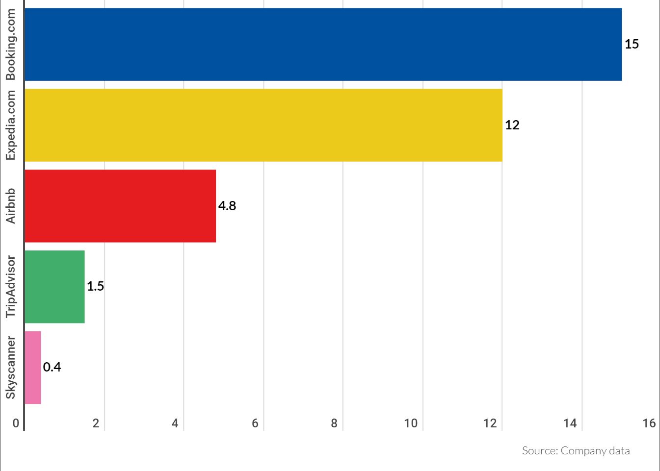 While Airbnb market share does not compete on sheer size, the company offers a far more unique and branded travel experience that will appeal to an adventurous traveler, rather than those simply looking for a traditional booking.